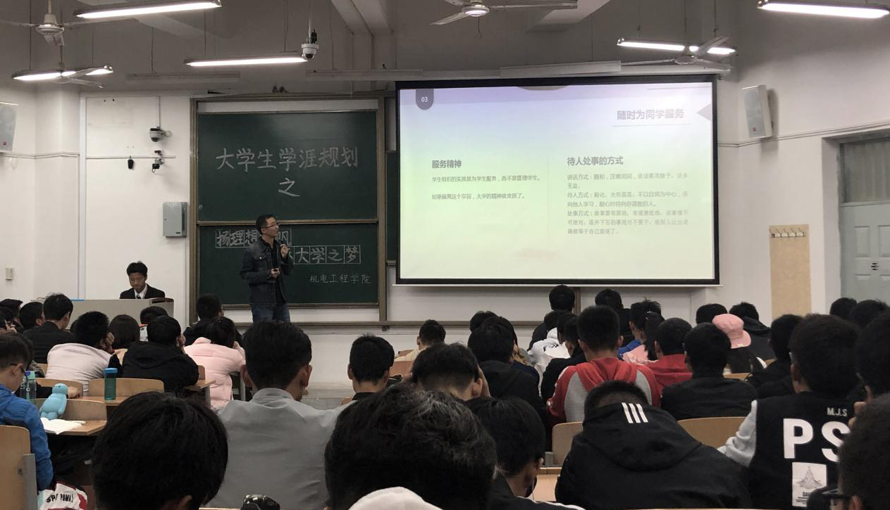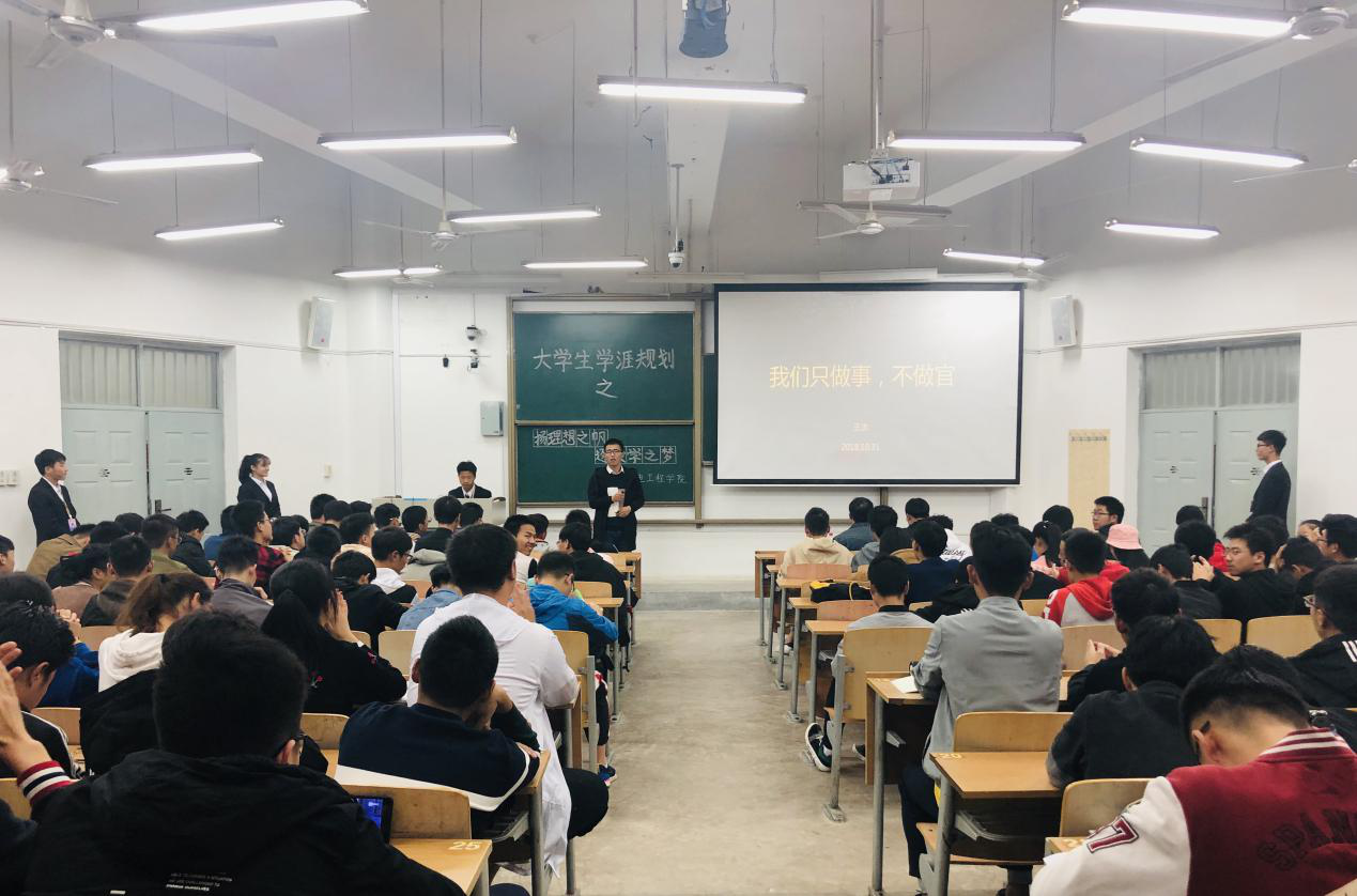2018年10月31日晚,suncitygroup太阳新城在教学楼B-335开展了以“扬理想之帆 逐大学之梦”为主题的大学生学涯规划活动。16级研究生李文森、郑晗、王杰三名同学和2018级全体本科新生参与了此次活动。