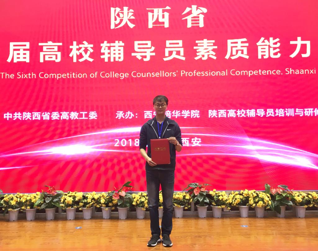 2018年4月28日,陕西省第六届高校辅导员素质能力大赛决赛在西安培华学院圆满落幕,来自全省79所高校的123名辅导员参加了比赛,我校suncitygroup太阳新城2015级辅导员秦方刚经过四个环节的激烈比拼后脱颖而出,荣获三等奖。