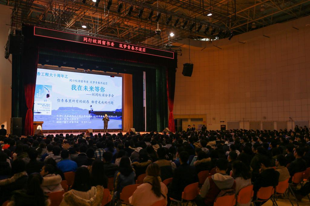 活动开始,校团委书记王晓先就刘同先生的到来表示热烈欢迎,并表达了希望通过此次活动能为广大学子树立“读好书、好读书”的理念。在简短的视频介绍后,刘同以“我在未来等你”为切入点,为所有在青春中困惑、迷茫,却心怀热血,坚持自我的人,指引了一条通向未来的路。除此以外,刘同还与在场大学生分享了自己大学及一路求职的经历。他认为人生需要创造更多的可能性,才能了解自己更大的潜能。并且告诉学生们要坚定理想,不能轻易放弃。刘同抛出“选择与被选择”这一观点,引发学生思考的同时,更坚定了他们从未来实践找到答案的信念。