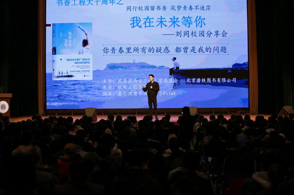 2017年11月29日下午15:00,由共青团太阳集团城官网委员会、北京磨铁图书有限公司主办,机电学院承办,嘉汇汉唐书城、百乐Pilot协办的第十届书香工程大系列活动之三——“同行校园留书香,筑梦青春不迷茫”刘同校园分享会在临潼校区大学生活动中心隆重举行。此次活动旨在创建良好的校园文化,营造浓郁的读书氛围,帮助学生树立远大人生目标,升华人生理想。机电学院全体辅导员和来自全校的近1000名学生参加了本次活动。活动由校团委书记王晓先主持。