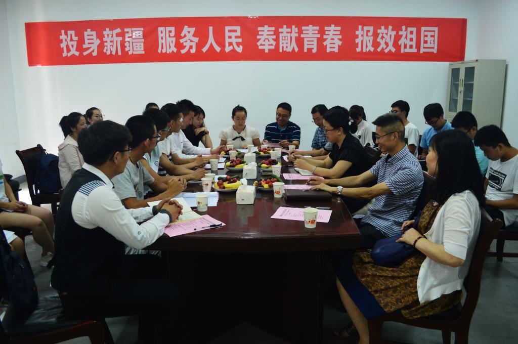 6月20日,机电学院举办“勇担重任 建功立业”赴新疆毕业生座谈欢送会。校党委宣传部部长王志、机电学院党委书记杨永革、机电学院党委副书记魏哲、工业设计教研室党支部书记张小平、机制教研室党支部书记管声启、导师代表张敏言、全体辅导员、2017届赴新疆基层工作毕业生和部分低年级学生代表参加座谈会。会议由辅导员杜静主持。