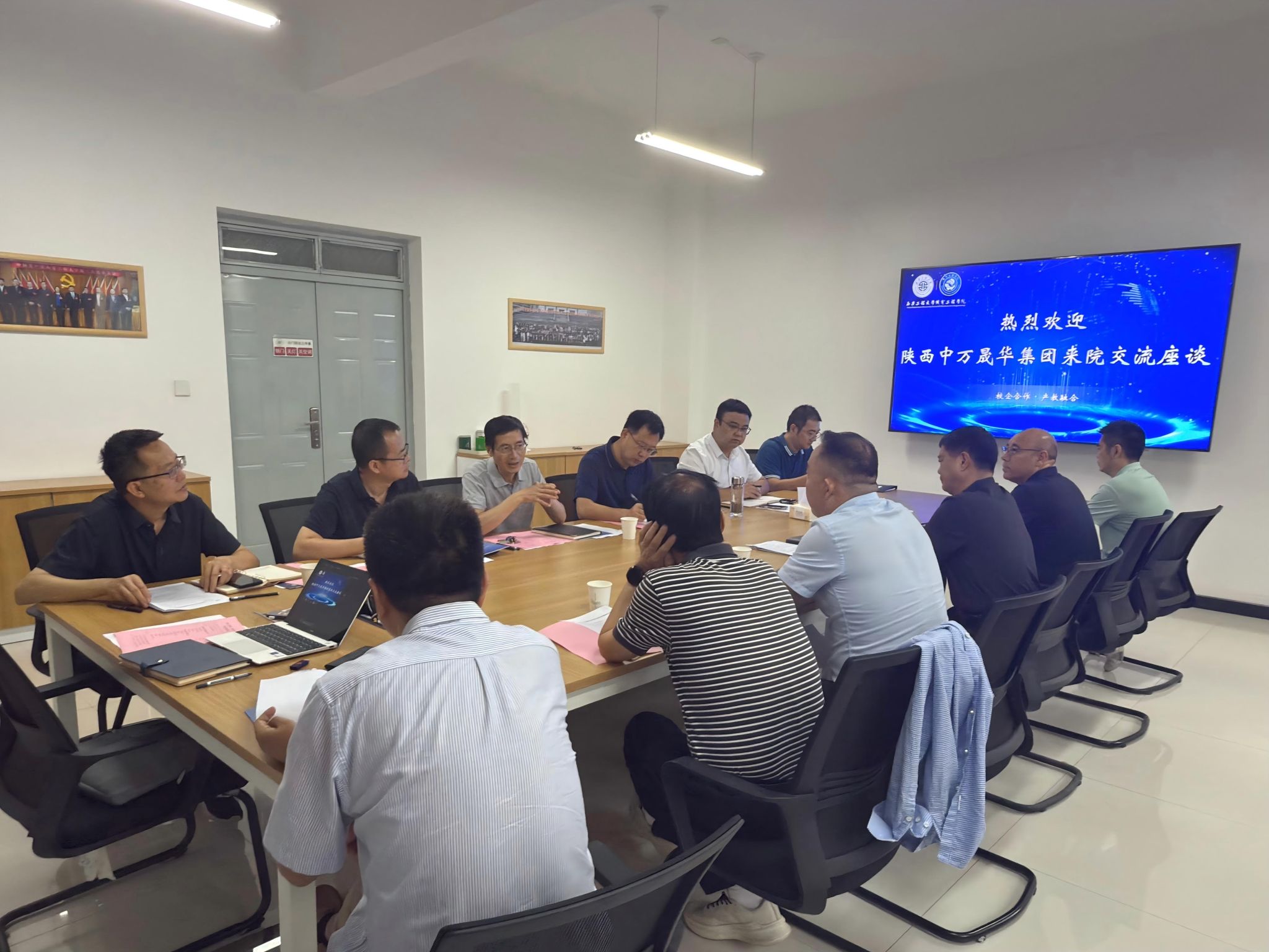 2025年9月10日上午,suncitygroup太阳新城与陕西中万晟华实业集团有限公司举办校企合作座谈会,陕西中万晟华实业集团有限公司副总米军瑞、宝晟联航总经理马西文、副总经理隽振华、项目总师张新江、suncitygroup太阳新城党委书记阚佩、副院长(主持工作)肖渊、党委副书记冯翊、副院长成小乐及学院教师代表出席会议,会议由学院副院长成小乐主持。