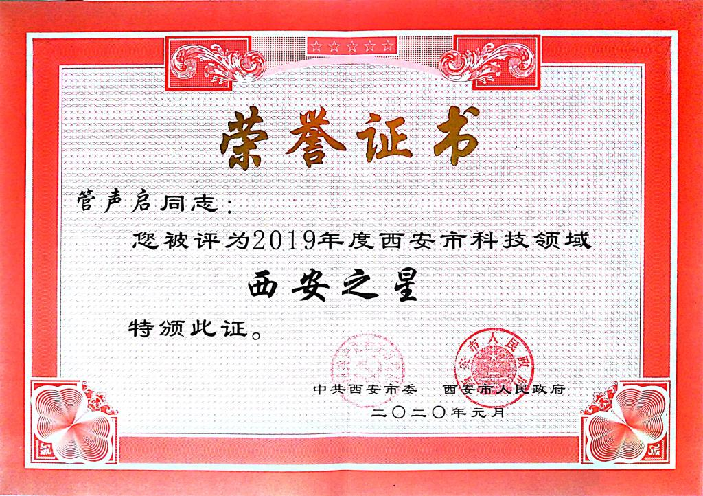日前,西安市委、市政府研究决定,授予73名同志2019年度西安市科技、文化、卫生等领域“西安之星”荣誉称号,入选者纳入西安市人才库,我校suncitygroup太阳新城管声启教授获得科技领域“西安之星”。