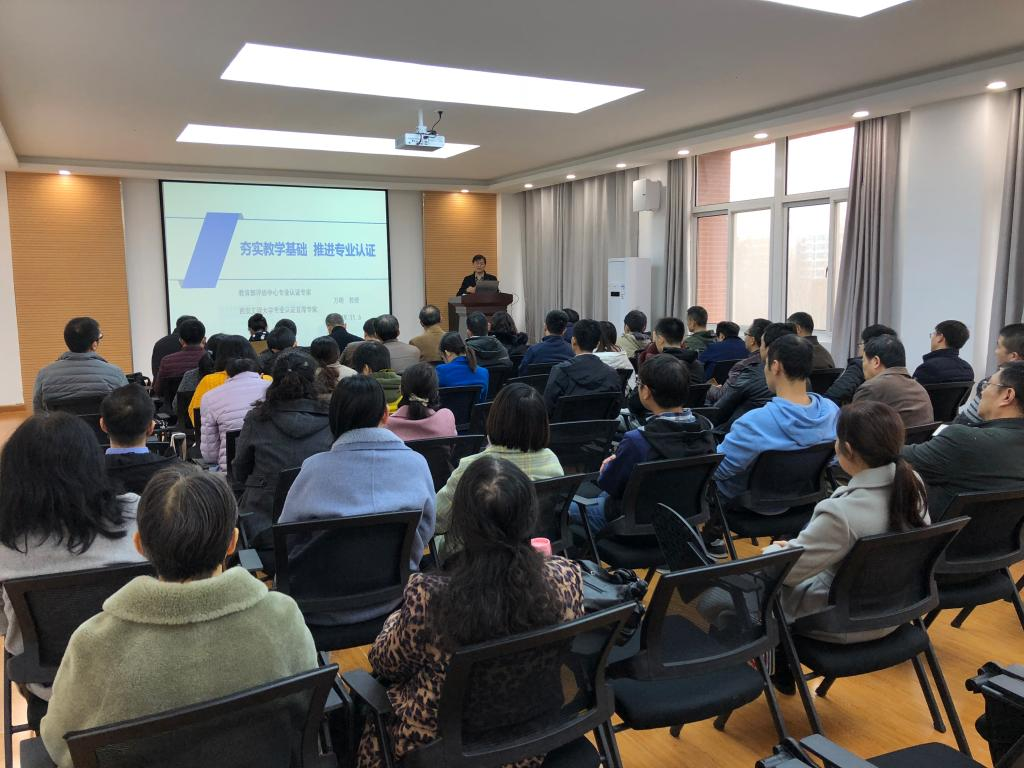 万明围绕工程教育专业认证的必要性、专业认证简介、专业认证的几个难点与对策、学校开展专业认证工作要点、推进一流专业建设等方面做了介绍。他系统地阐释了专业认证的内涵和要求,强调工程教育认证工作对学校发展、专业走向及学生培养的重要性,接着从“为什么要做专业认证、专业认证是什么、如何进行专业认证、专家进校考查怎样进行的”等四个方面详细讲解了工程教育认证的相关事宜。