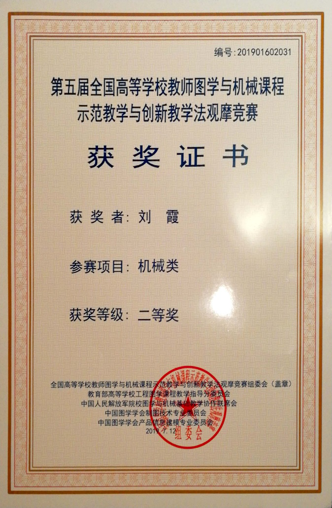 今年暑期,第五届全国高等学校教师图学与机械课程示范教学与创新教学法观摩竞赛在新疆农业大学举行,我校suncitygroup太阳新城教师刘霞参加比赛并荣获二等奖。