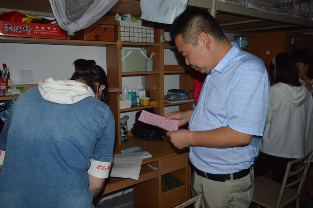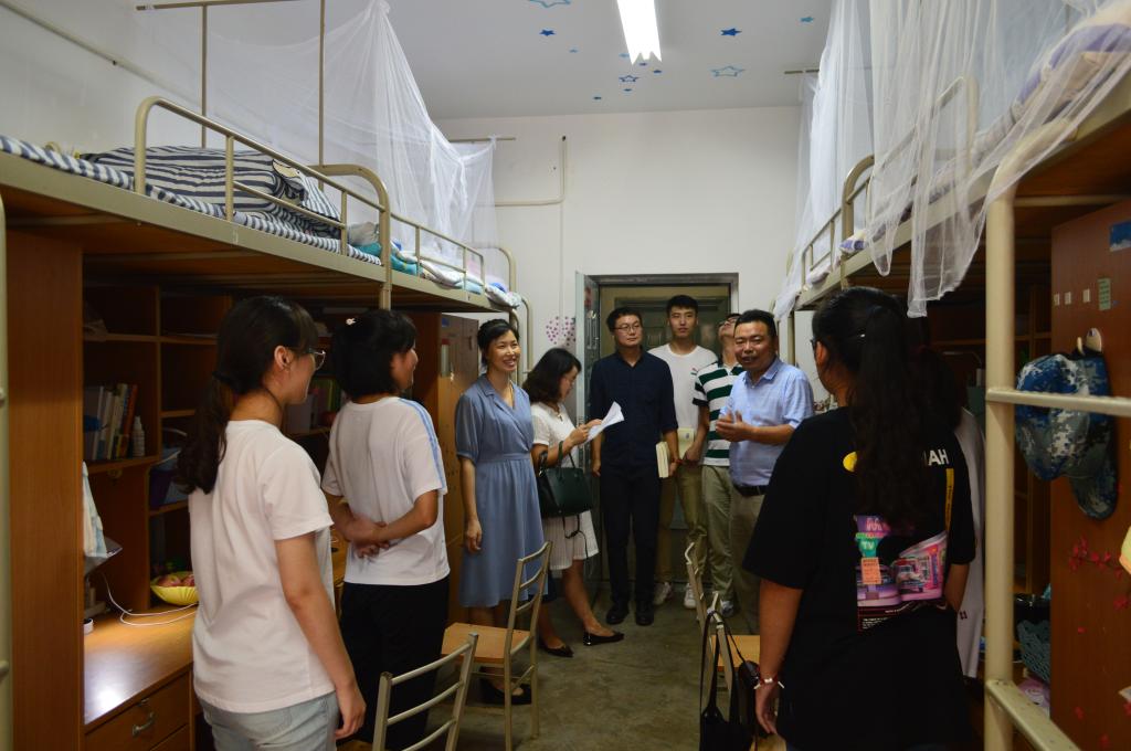 家长学校交流会结束后,机电学院联系校领导、校党委副书记赵小峰会同机电学院班子成员胥光申、王鸣媛、肖渊、冯涛和全体辅导员对本科生、研究生新生宿舍进行了走访慰问。老师们与学生亲切交谈,表达了学校和学院对新生的欢迎,进一步拉近了师生间的距离,让2019级“萌新”们感受到学院无微不至的关怀以及对新生的重视与期盼。
