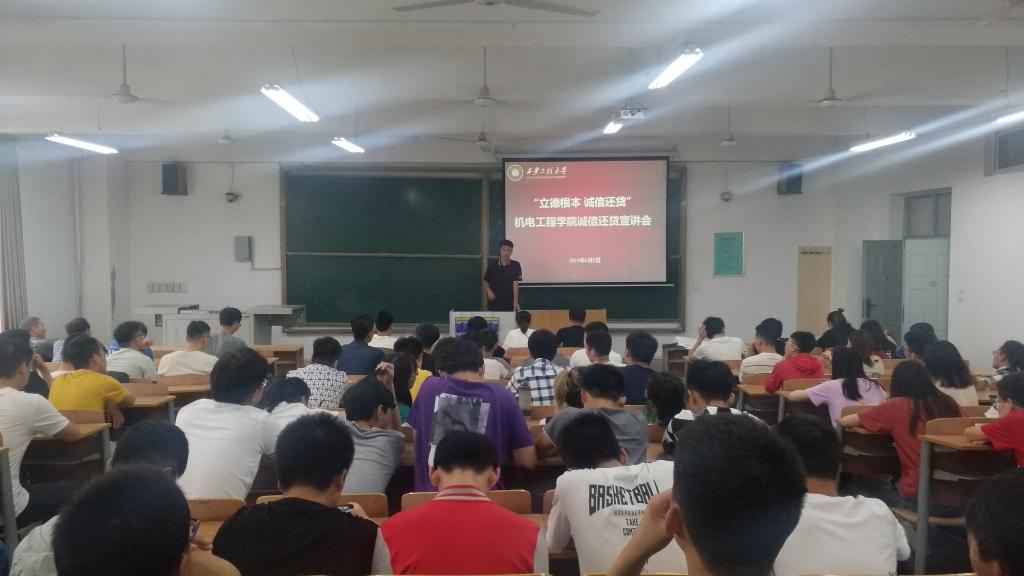 为切实做好生源地贷款教育工作,帮助贷款毕业生树立诚信还贷意识,2019年6月5日,suncitygroup太阳新城举办了以“立德根本诚信还贷”为主题的毕业生诚信还贷宣讲会。机电学院2015级学生辅导员秦方刚、学院资助专项工作辅导员刘鹏和100余名生源地贷款毕业生参加了班会。